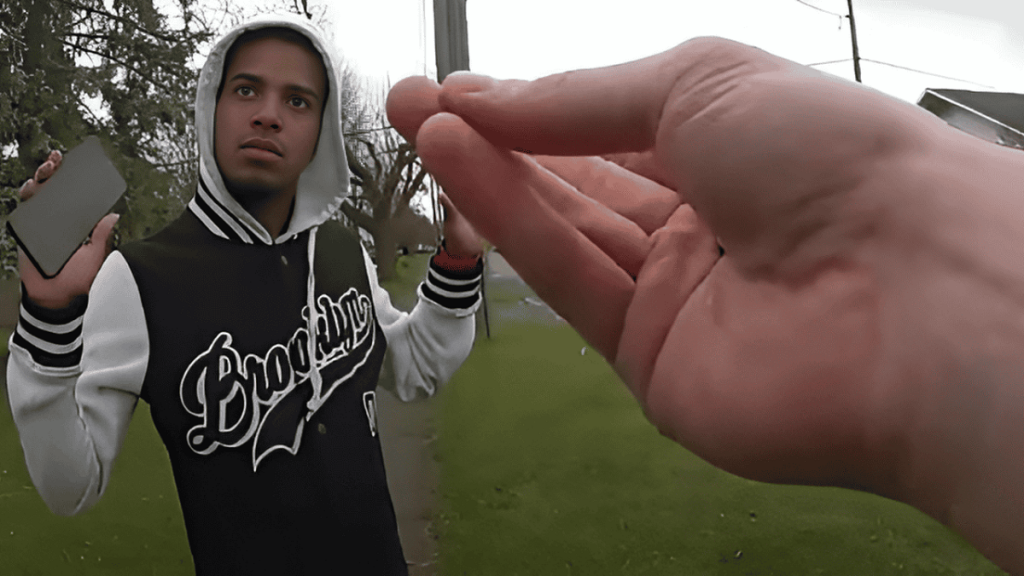 Surveillance footage from the bank shows the suspect holding up his phone to display translated text instructing the tellers to place money in a bag. While there was no weapon involved, the suspect’s actions prompted an immediate police response. Upon locating him a short time later, officers from the East Parish Police Department approached cautiously, instructing him to remove his hands from his pockets and identify himself.